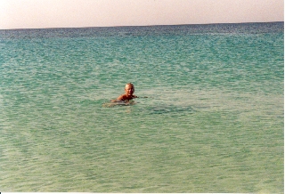 Am Morgen übersiedeln wir, Roza fragt, was wir im Vorjahr bezahlt haben, da ich mich nicht erinnern kann machen wir DRX 7.000,- pro Nacht aus. Beim Warten auf den Bus (DRX 350,- pro Person) stellen wir fest, daß keiner die Sonnencremes eingepackt hat (außer die 12er, die L. im Rucksack hat) und am Strand bemerke ich dann, daß meine Filme noch im Koffer sind. Bis ca. 11:00 ist es leicht bewölkt, danach aber wolkenlos; es weht ein leichter Wind - angenehme Temperatur! Am Strand sind - wie immer um diese Jahreszeit - sehr viele Deutsche, hauptsächlich Frauen, die sich sehr laut über alle möglichen total uninteressanten Themen unterhalten. Um 13:45 gehe ich zum ersten Mal ins Wasser: sehr angenehm! Der Tag bleibt sehr schön, nicht zu heiß und wir dösen vor uns hin, lesen, relaxen …