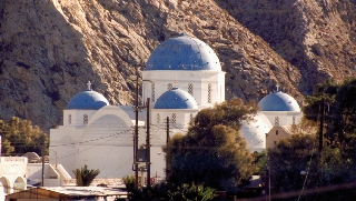 Steinplatten breit machen. Im Bad beginnt es immer, wenn das Wasser beim Duschen länger läuft ziemlich zu stinken - gleich wie im Hafen unten - anscheinend ist die Kanalisation überfordert - den Geruch hab ich noch wochenlang in der Nase! Wir gehen wieder in den drüberen Ortsteil und essen um DRX 12.000,- frischen Fisch mit Tzatziki und Melitzanosalata (wozu wir 3 Bier trinken), um ca. 23:30 sind wir aber wieder im Zimmer, im Vergleich zu Naxos ist es unglaublich ruhig: keine Mofas, auch sonst praktisch kein Lärm! Als Unterhaltung für die Touristen spielt im Lokal Le Grand Bleu in einer Endlosschleife der Film The Big Blue mit Jean Reno, der hier auf Amorgos gedreht wurde. |