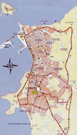 verlassen, wollen sich aber melden. Zum Essen gibt es dann Melitzanosalata und gefüllten Tintenfisch (nicht so gut wie der bei Nikolas) bzw. griechischen Salat und Saganaki. Inklusive 3 Bier zahlen wir DRX 8.500,- Die Nacht ist dann ziemlich laut, da auf der Straße sehr viel los ist. |
