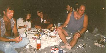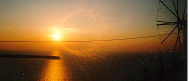 10. Tag: Mittwoch, 1. Oktober Bin zwar schon um 08:45 munter, schlaf aber wieder ein, geh dann um 09:45 zum Strand, nach Kamari zu gehen macht heute keinen Sinn mehr … Susan, die Freundin von Hans, erzählt, daß die Hunde jetzt bei Saisonende dann getötet werden, da sie sich sonst zusammenrotten und gefährlich werden. Sie möchte einen (Ati) gern mitnehmen … Das Wetter ist jetzt (12:00) sehr warm, ganz leicht bewölkt und normal windig; es ist wenig los, das Petra scheint wirklich geschlossen zu sein, Dave will am w/e nach Athen; Um 14:00 sind dann alle von der Party am Strand, es ist der heißeste Tag bisher und es bleibt sehr schön. Nun, um 17:20 liegen 5 Hunde rund um mich herum - werde ich zum Hundefreund? Die Fischer richten ihre Boote her, ein schöner Sonnenuntergang kündigt sich an und Hans geht sein Auto bepacken, auch mein Urlaub ist nun zu 2/3 vorbei - soll ich mich freuen (weil so wenig los ist und GG mir fehlt) oder ärgern (weil's sicher wieder dauern wird, bis ich ans Meer komme)? Esse Saganaki und trinke dann einige Screwdriver im F.M. |
