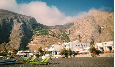 Perissa, wo ich überraschend Hans treffe, der zum x. Mal die Abfahrt